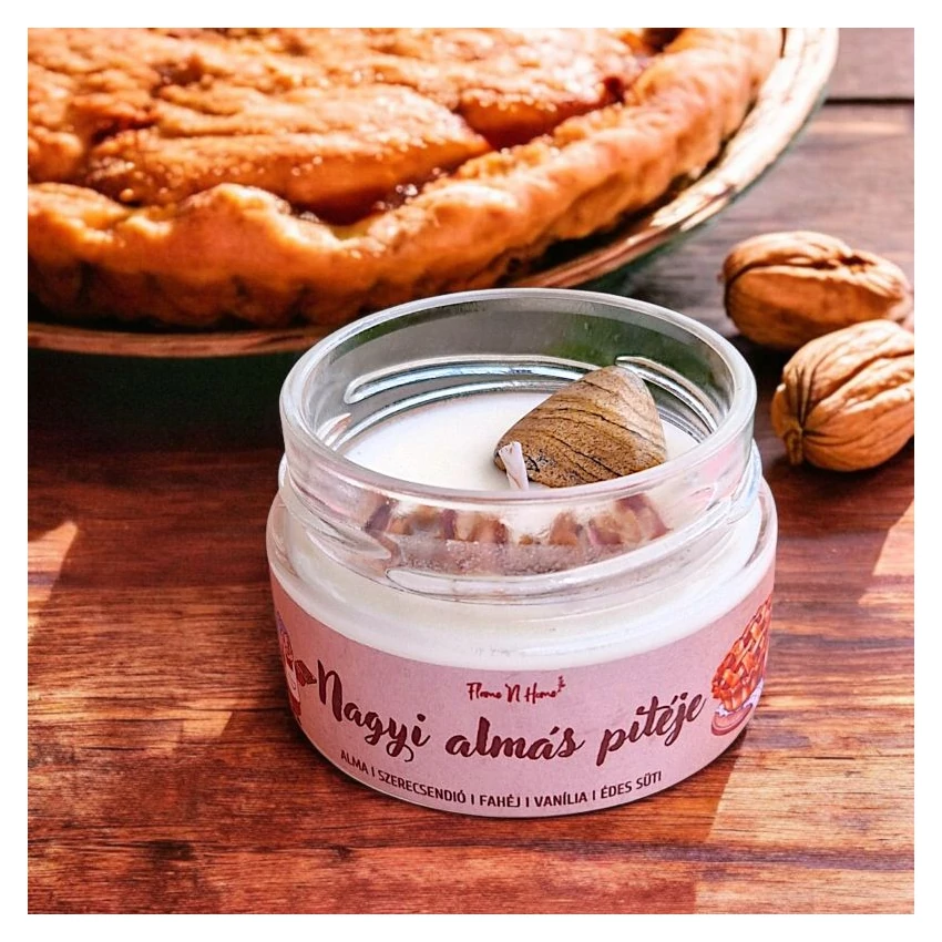 A Nagyi almás pitéje illatgyertya tökéletesen visszaadja a klasszikus, meleg, sütőtől illatozó napok hangulatát, amikor a család körülülte a konyhaasztalt, és együtt élveztétek az ősz ízeit. Felidézi nagymamád szeretettel készült süteményeinek emlékét és elhozza otthonodba a frissen sült almás pite meleg, édes illatát. Az első illat, ami átjárja a teret, a friss citrom és ropogós alma kellemes keveréke, mintha egy szeletet vágnál a pitéből, és megéreznéd az édes, gyümölcsös illatokat.