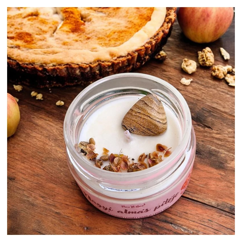 Ahogy a gyertya tovább ég, a szívillatban az alma édessége keveredik a meleg szerecsendióval és a fűszeres fahéjjal, ami pontosan felidézi a sütemény gazdag, fűszeres illatát, amit csak az őszi napok varázsa tud még különlegesebbé tenni.